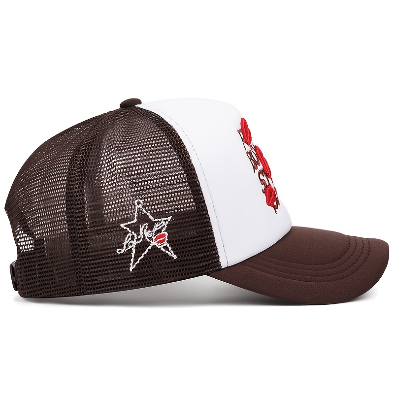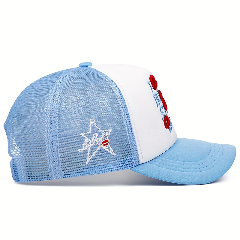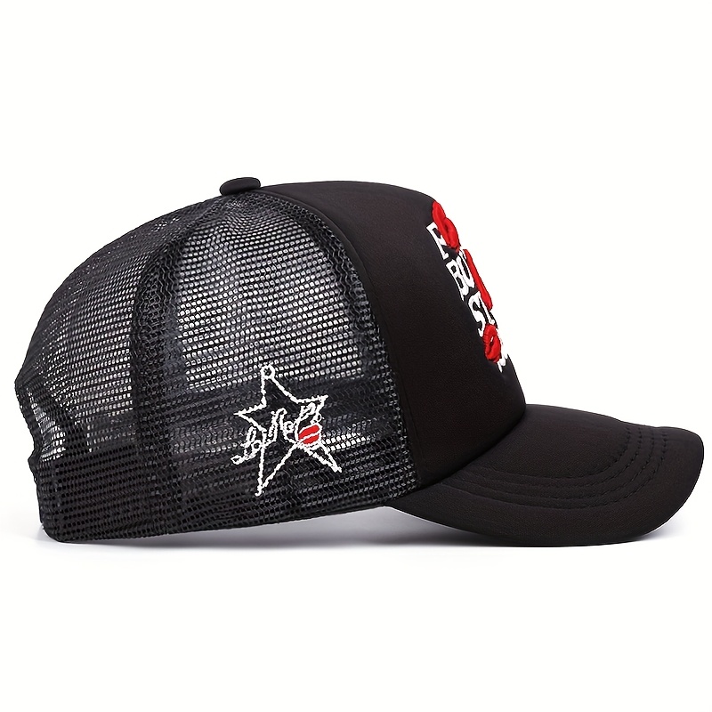 A Men'S Baseball Cap with Lip Print Embroidery, a Hip-Hop Trucker Hat for Outdoor Sports, Suitable for Women