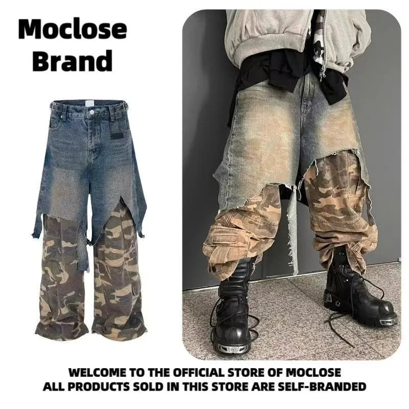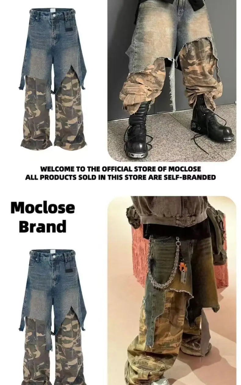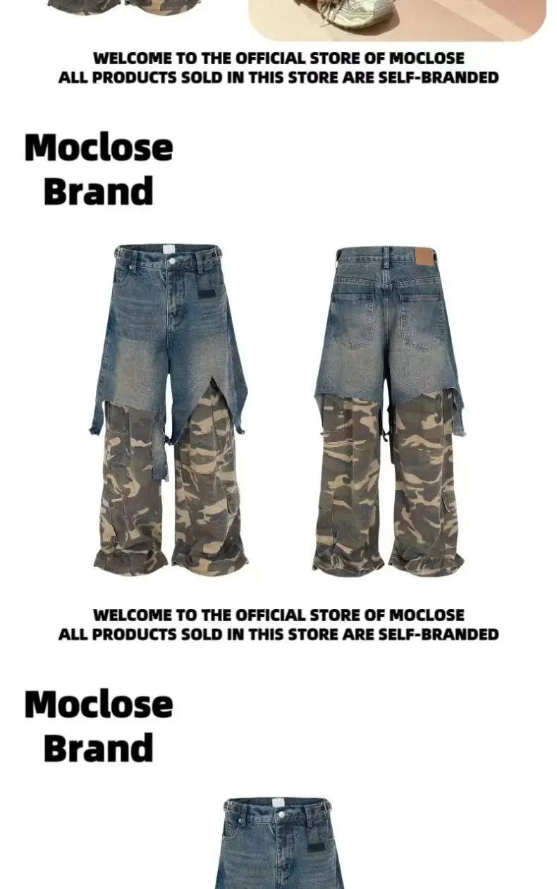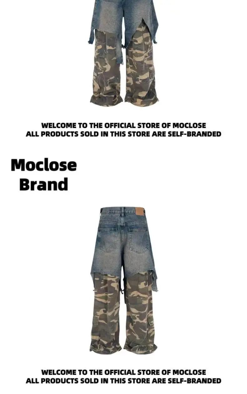 Jean Goth Vintage – Détail Superposé, Look Camouflage, Coupe Ample