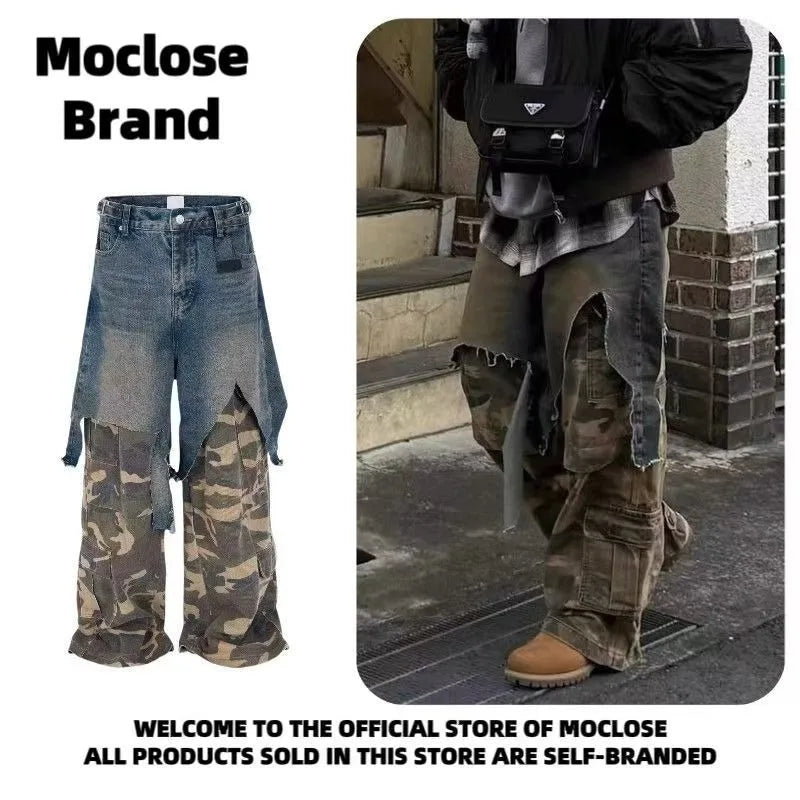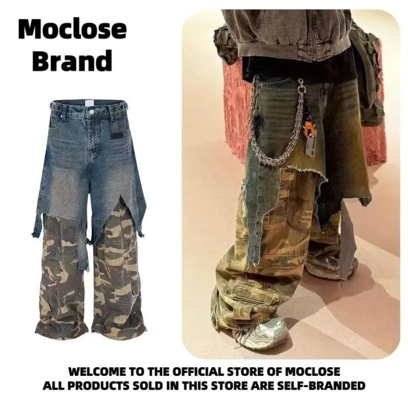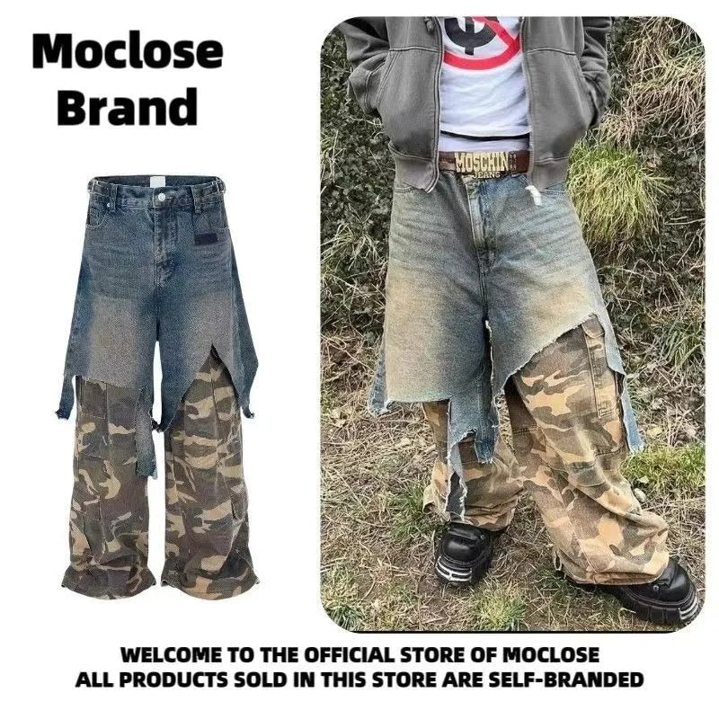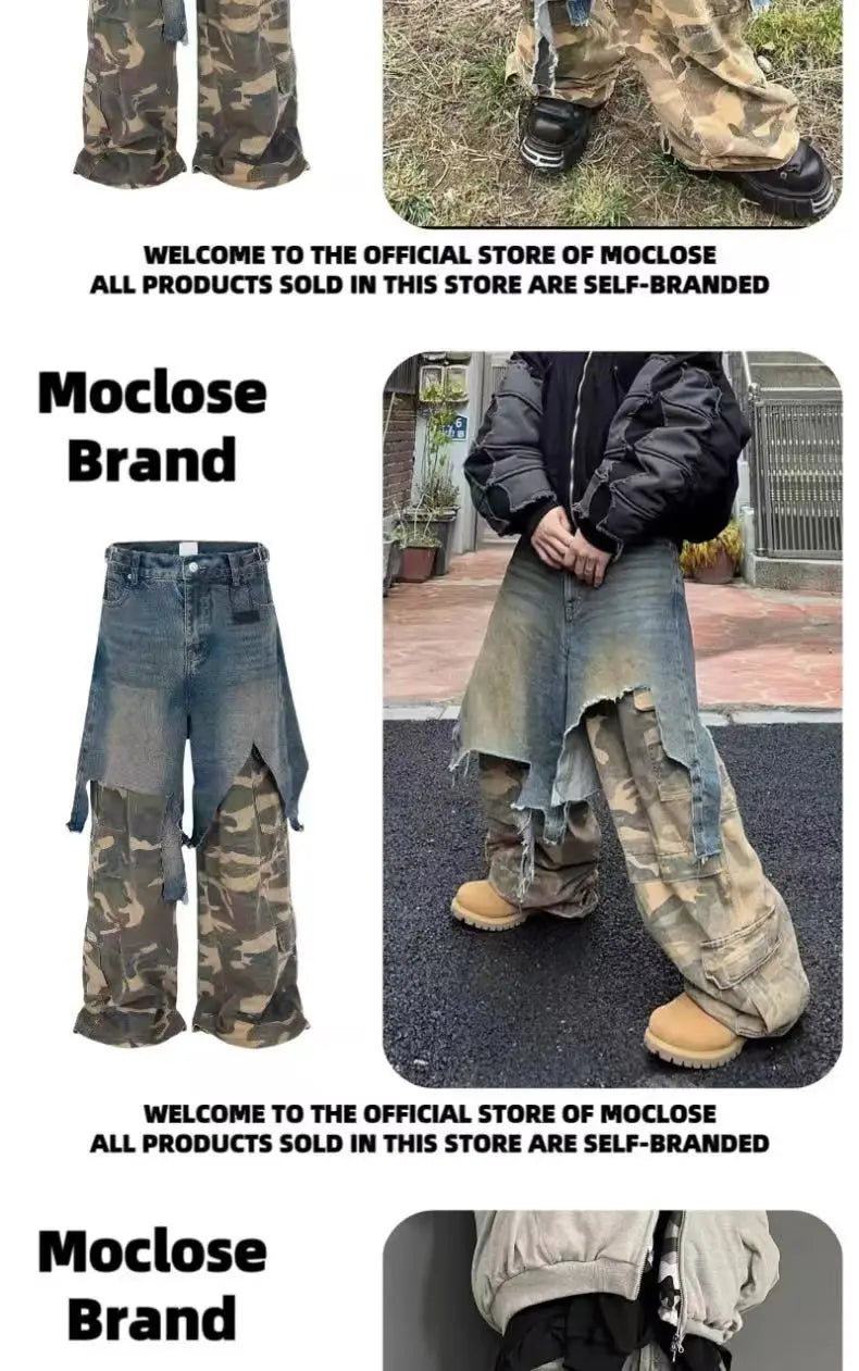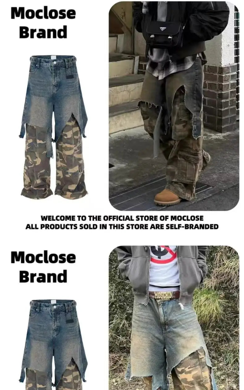 Jean Goth Vintage – Détail Superposé, Look Camouflage, Coupe Ample