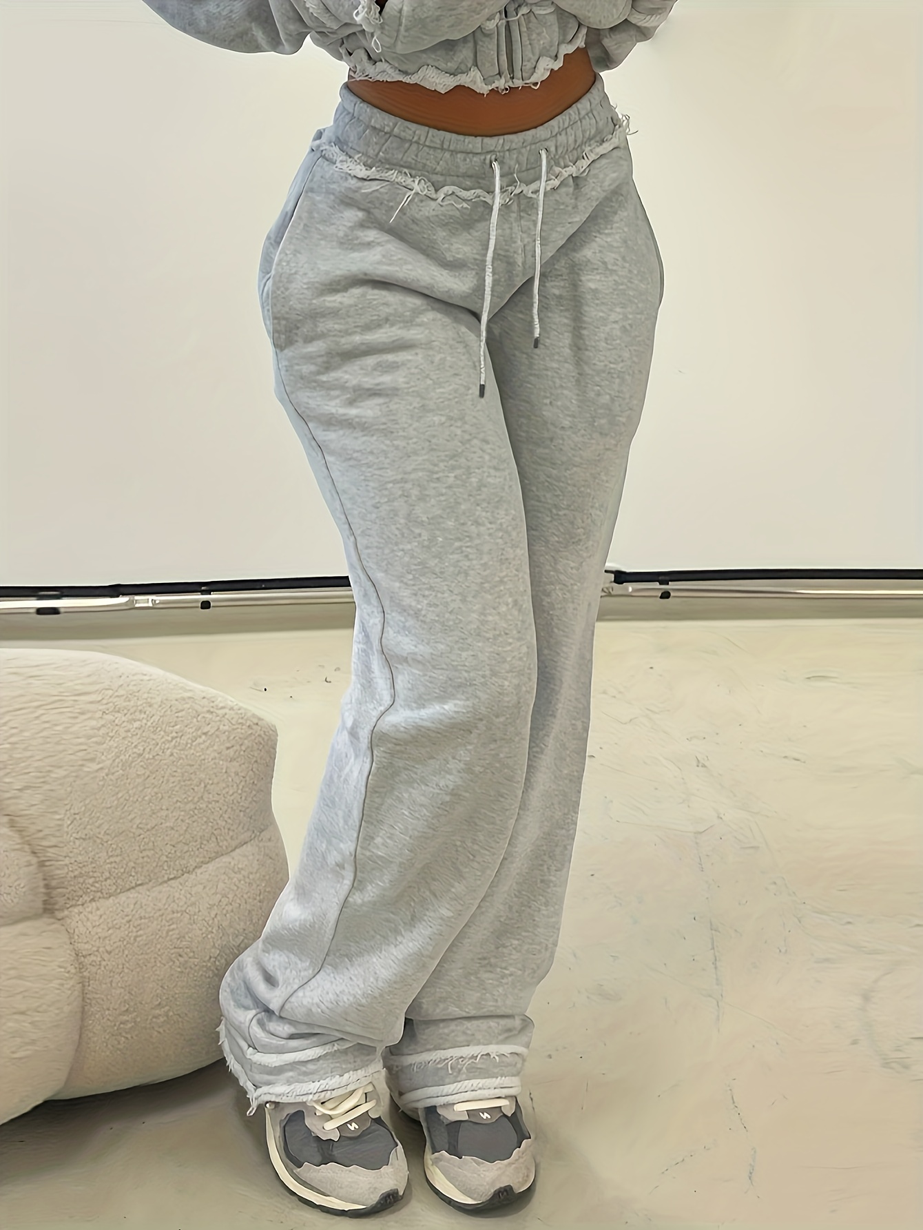 Solid Color Straight Leg Sweatshirt Pants with Pocket - All-Season Machine Washable Sweater Trousers, Cozy Casual & Dressy Outfits for Jeans or Blouses, Year-Round Wear (Compatible with Skirts/Shirts)