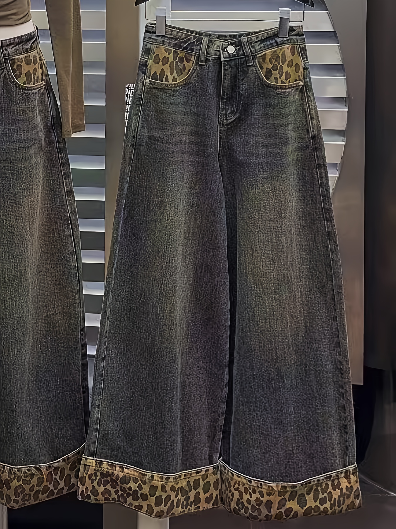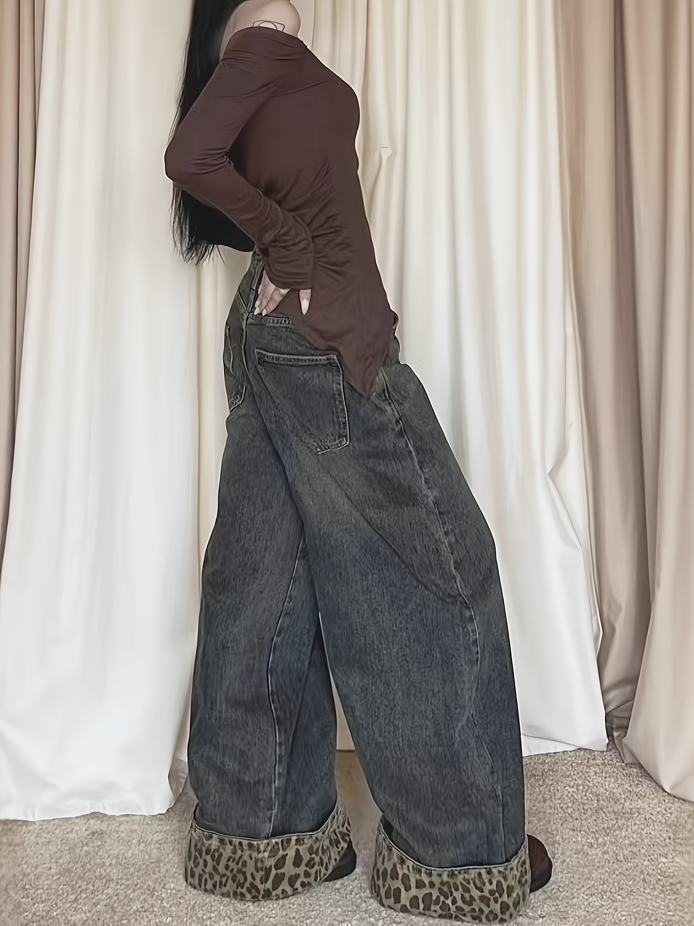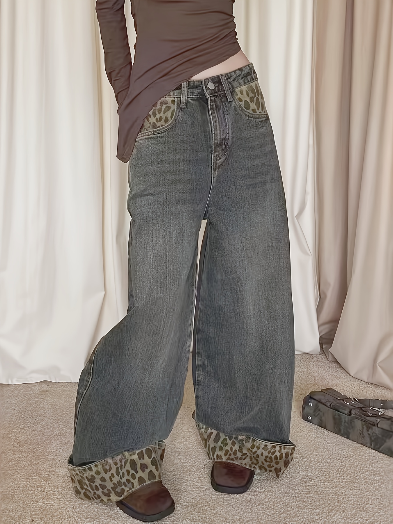Women's Y2K Leopard Print Patchwork Wide-Leg Jeans, Loose Fit Straight Leg Pants for Spring, Summer, and Autumn, Versatile Fashion Trousers